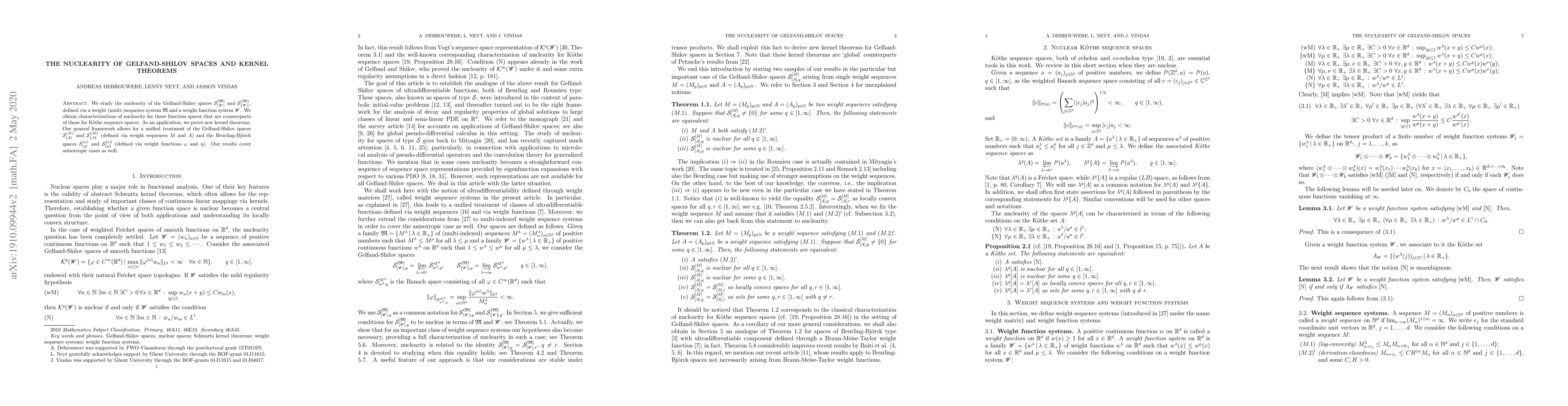 This paper investigates the nuclearity of Gelfand-Shilov spaces defined by weight systems, providing characterizations analogous to Kőthe sequence spaces and proving new kernel theorems within a unified framework that encompasses various types of these spaces.