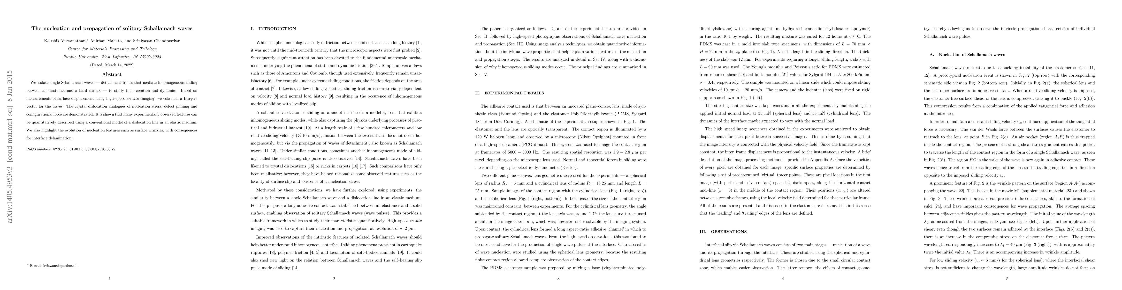 Researchers study solitary Schallamach waves, detachment fronts that form during inhomogeneous sliding between materials, using high-speed imaging to establish a Burgers vector and demonstrate the role of crystal dislocation analogues in their creation.