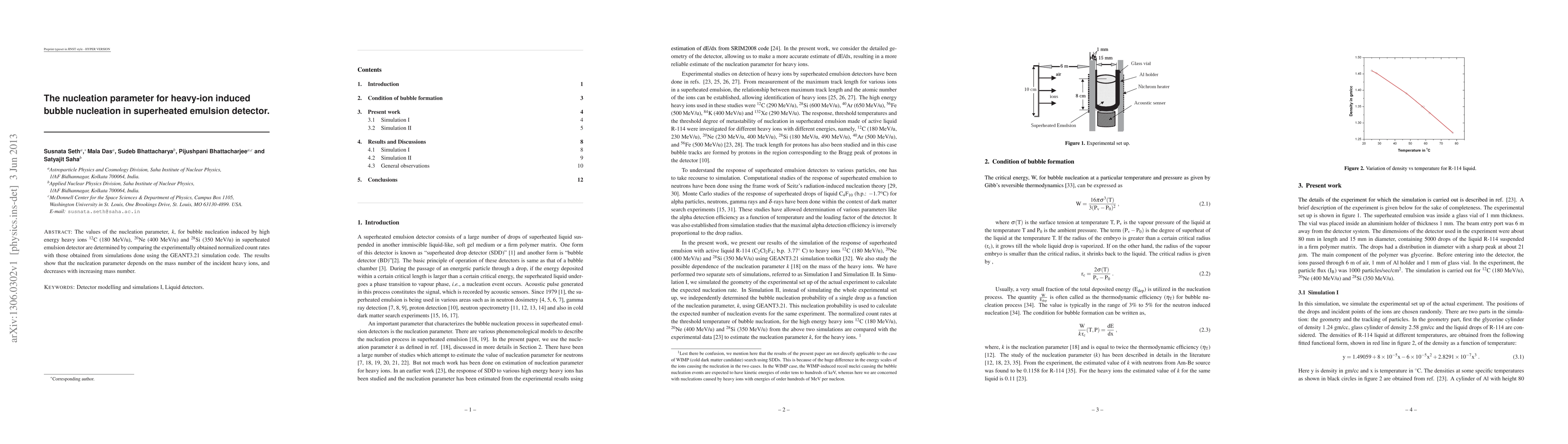Research found that heavy ions can induce bubble nucleation in a superheated emulsion detector, with the frequency decreasing as the mass number of the ion increases.