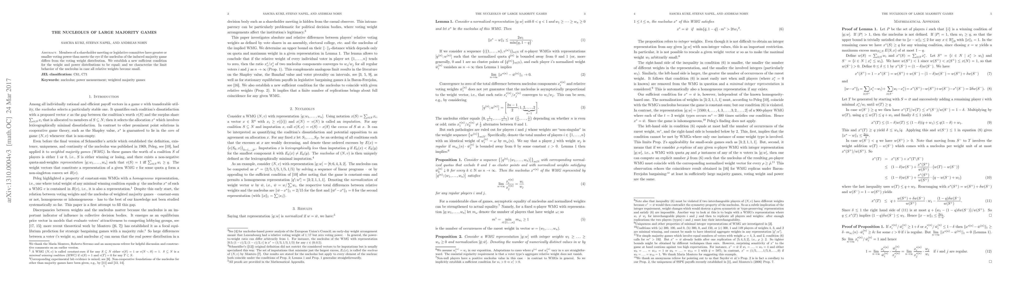 The nucleolus of a majority game can affect voting power, with equal distributions being a key finding. Researchers established a new condition for weight equality and characterized limit behavior in small relative weights.