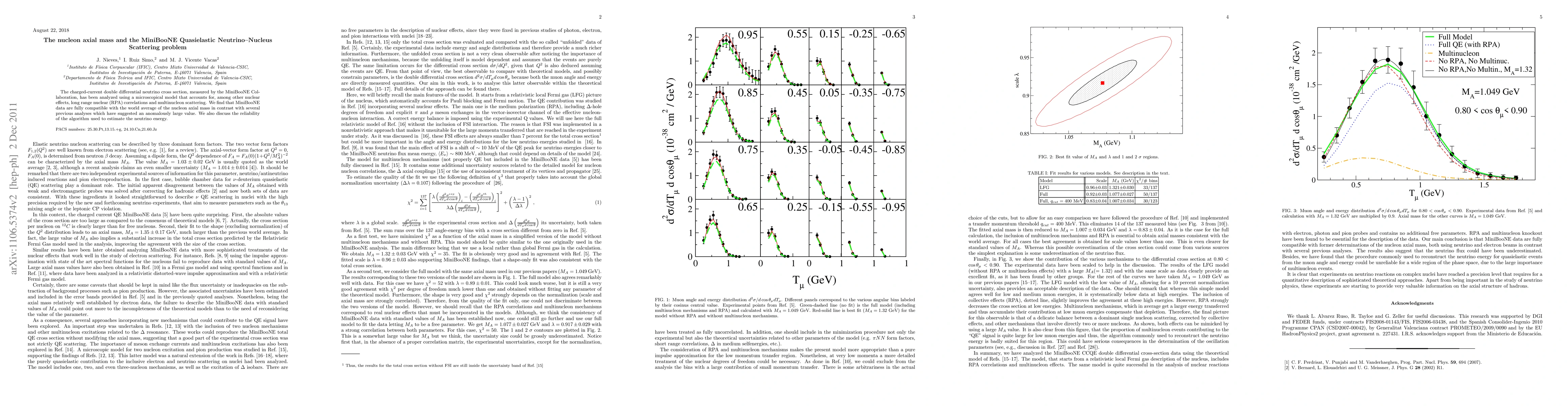 The charged-current double differential neutrino cross section, measured by the MiniBooNE Collaboration, has been analyzed using a microscopical model that accounts for, among other nuclear effects, long range nuclear (RPA) correlations and multinucleon scattering. We find that MiniBooNE data are fully compatible with the world average of the nucleon axial mass in contrast with several previous analyses which have suggested an anomalously large value. We also discuss the reliability of the algorithm used to estimate the neutrino energy.
