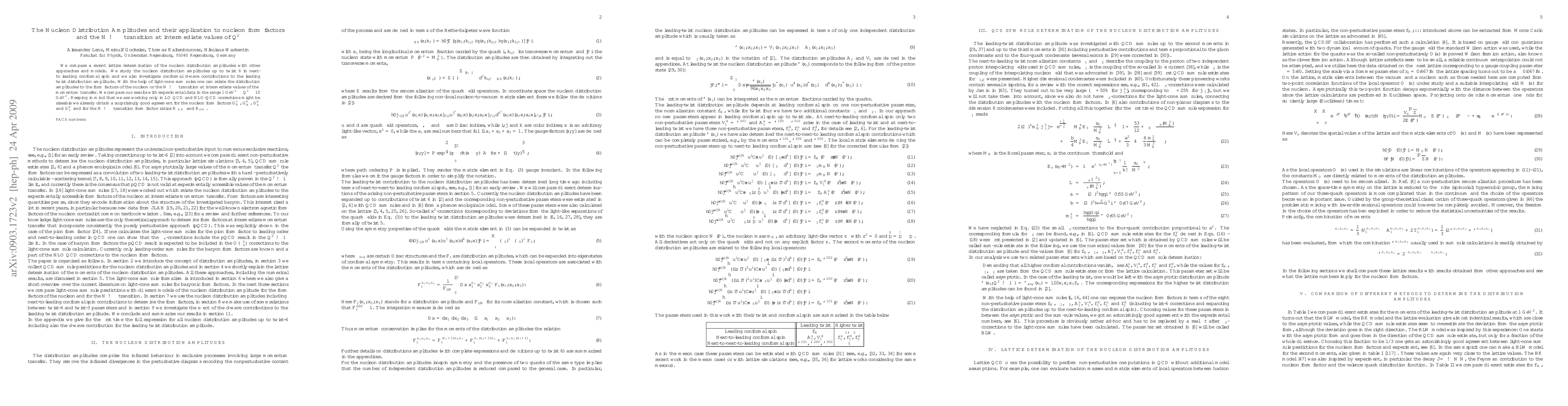 We compare a recent lattice determination of the nucleon distribution amplitudes with other approaches and models. We study the nucleon distribution amplitudes up to twist 6 in next-to leading conformal spin and we also investigate conformal d-wave contributions to the leading twist distribution amplitude. With the help of light-cone sum rules one can relate the distribution amplitudes to the form factors of the nucleon or the $ N \to \Delta$ transition at intermediate values of the momentum transfer. We compare our results with experimental data in the range 1 GeV$^2 \leq Q^2 \leq 10$ GeV$^2$. Keeping in mind that we are working only in LO QCD and NLO-QCD corrections might be sizeable we already obtain a surprisingly good agreement for the nucleon form factors $G_M^n$, $G_M^p$, $G_A^p$ and $G_T^p$ and for the $N \to \Delta$ transition form factor ratios $R_{EM}$ and $R_{SM}$.