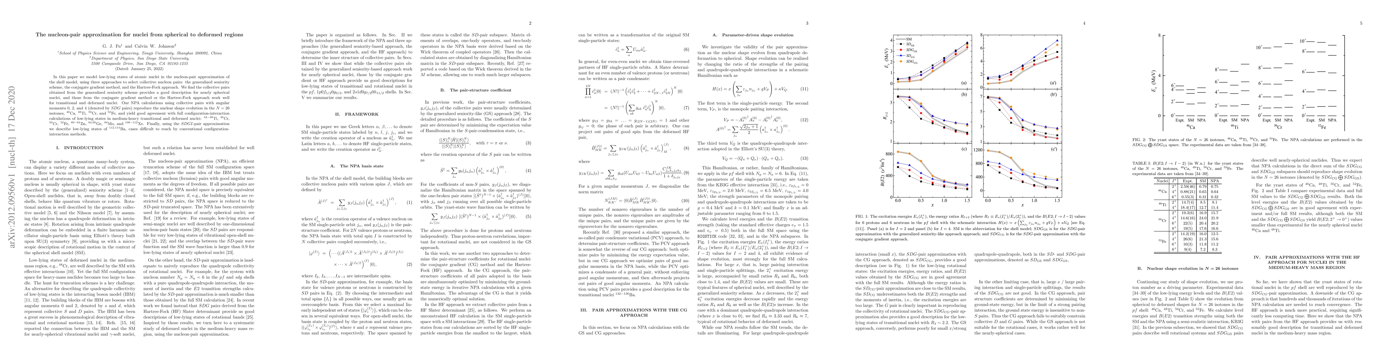 In this paper we model low-lying states of atomic nuclei in the nucleon-pair approximation of the shell model, using three approaches to select collective nucleon pairs: the generalized seniority scheme, the conjugate gradient method, and the Hartree-Fock approach. We find the collective pairs obtained from the generalized seniority scheme provides a good description for nearly spherical nuclei, and those from the conjugate gradient method or the Hartree-Fock approach work well for transitional and deformed nuclei. Our NPA calculations using collective pairs with angular momenta 0, 2, and 4 (denoted by $SDG$ pairs) reproduce the nuclear shape evolution in the $N=26$ isotones, $^{46}$Ca, $^{48}$Ti, $^{50}$Cr, and $^{52}$Fe, and yield good agreement with full configuration-interaction calculations of low-lying states in medium-heavy transitional and deformed nuclei: $^{44-48}$Ti, $^{48}$Cr, $^{50}$Cr, $^{52}$Fe, $^{60-64}$Zn, $^{64,66}$Ge, $^{84}$Mo, and $^{108-112}$Xe. Finally, using the $SDGI$-pair approximation we describe low-lying states of $^{112,114}$Ba, cases difficult to reach by conventional configuration-interaction methods.