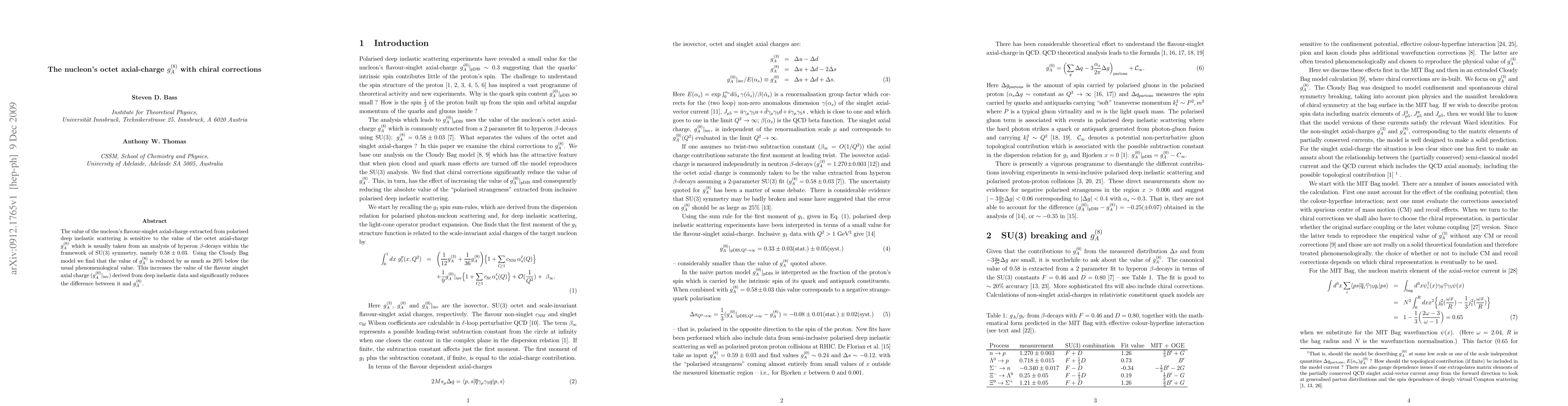 The value of the nucleon's flavour-singlet axial-charge extracted from polarised deep inelastic scattering is sensitive to the value of the octet axial-charge g_A^8 which is usually taken from an analysis of hyperon beta-decays within the framework of SU(3) symmetry, namely 0.58 \pm 0.03. Using the Cloudy Bag model we find that the value of g_A^8 is reduced by as much as 20% below the usual phenomenological value. This increases the value of the flavour singlet axial charge (g_A^0|_inv) derived from deep inelastic data and significantly reduces the difference between it and g_A^8.
