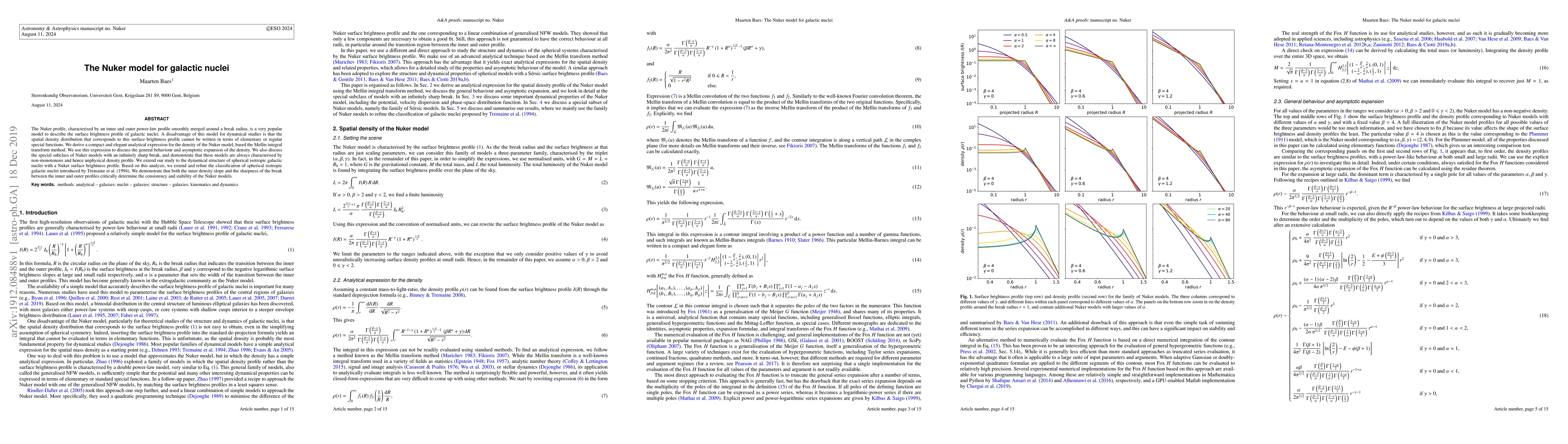 This research derives an analytical expression for the density of Nuker models, a popular galactic nuclei description. It discusses the behavior and stability of these models, refining the classification of spherical isotropic galactic nuclei based on inner density slope and break sharpness.