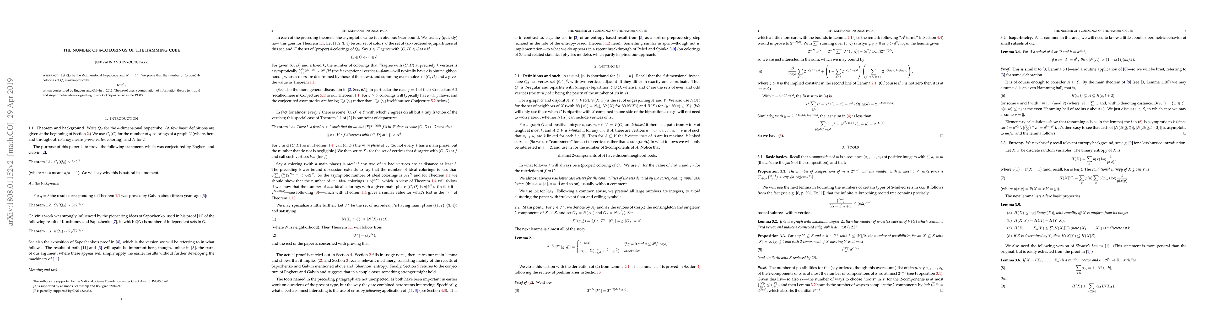 Let $Q_d$ be the $d$-dimensional hypercube and $N=2^d$. We prove that the number of (proper) 4-colorings of $Q_d$ is asymptotically \[6e2^N,\] as was conjectured by Engbers and Galvin in 2012. The proof uses a combination of information theory (entropy) and isoperimetric ideas originating in work of Sapozhenko in the 1980's.
