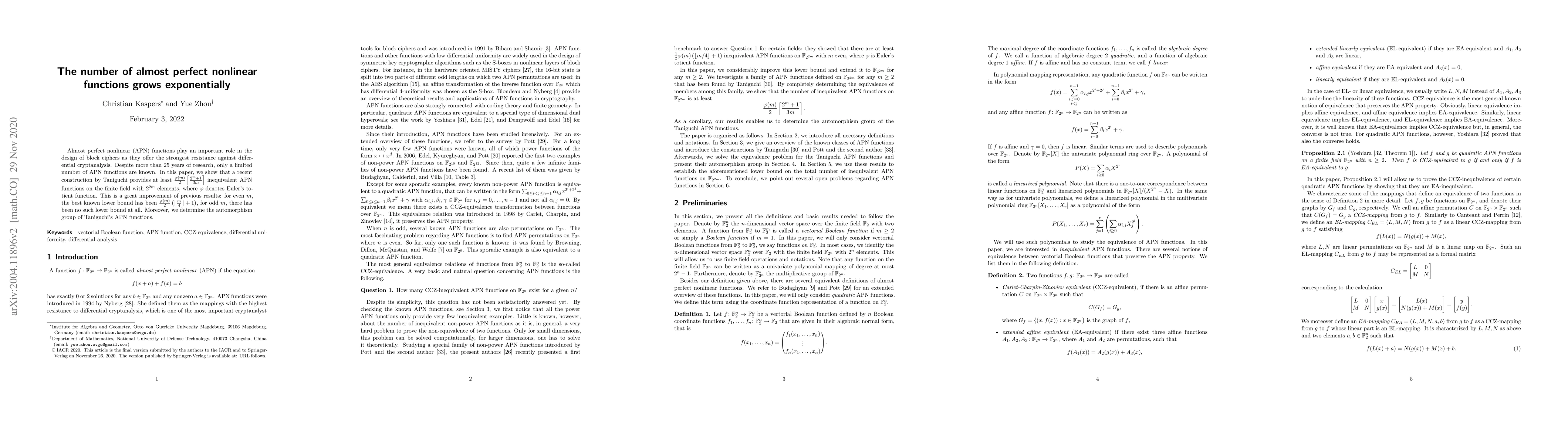 Researchers have discovered a significant increase in almost perfect nonlinear (APN) functions on finite fields, which is crucial for designing strong block ciphers, with a new lower bound of $rac{ heta(m)}{2} ight ceil rac{2^m+1}{3m}$ functions.