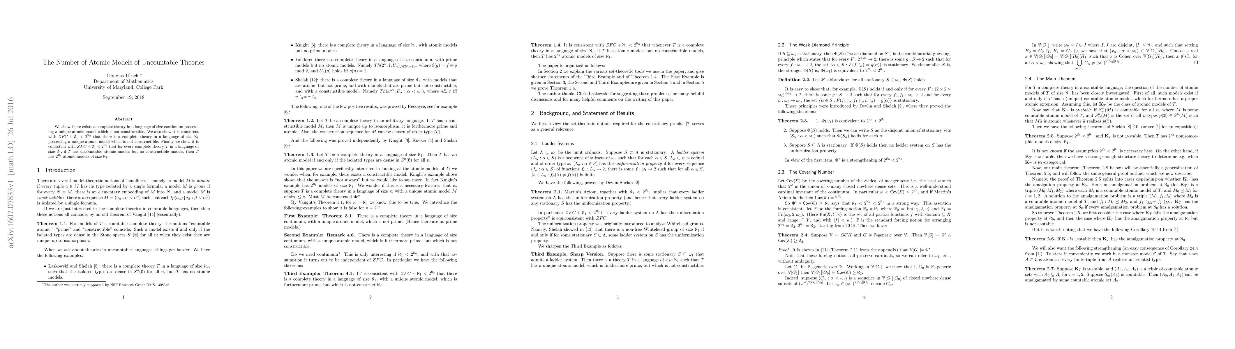 We show there exists a complete theory in a language of size continuum possessing a unique atomic model which is not constructible. We also show it is consistent with $ZFC + \aleph_1 < 2^{\aleph_0}$ that there is a complete theory in a language of size $\aleph_1$ possessing a unique atomic model which is not constructible. Finally we show it is consistent with $ZFC + \aleph_1 < 2^{\aleph_0}$ that for every complete theory $T$ in a language of size $\aleph_1$, if $T$ has uncountable atomic models but no constructible models, then $T$ has $2^{\aleph_1}$ atomic models of size $\aleph_1$.