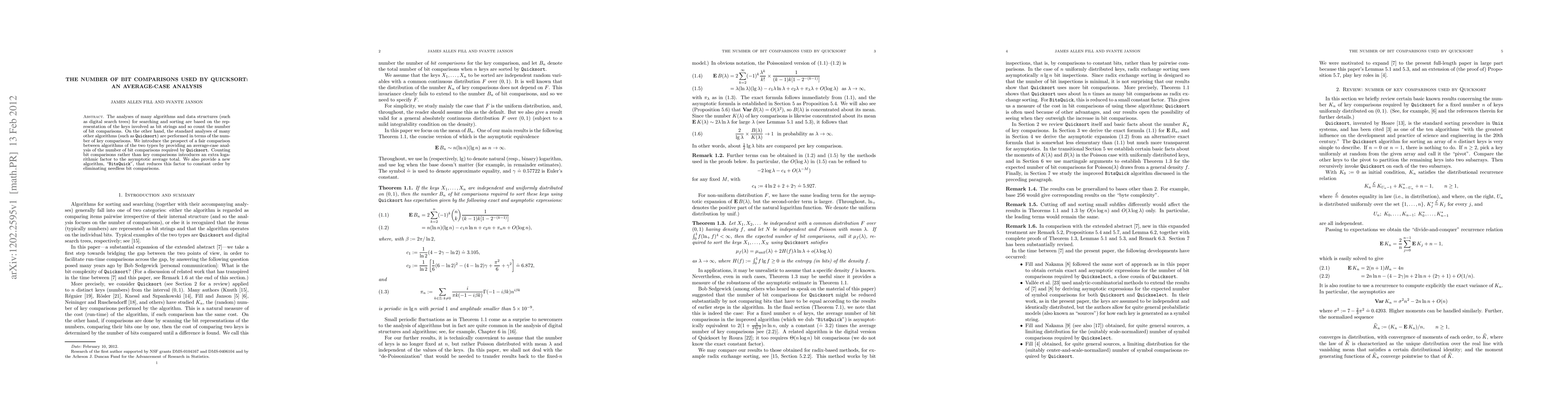 A new analysis provides an average-case estimate of Quicksort's bit comparisons, introducing a logarithmic factor, while a new algorithm reduces this to constant order, improving efficiency.