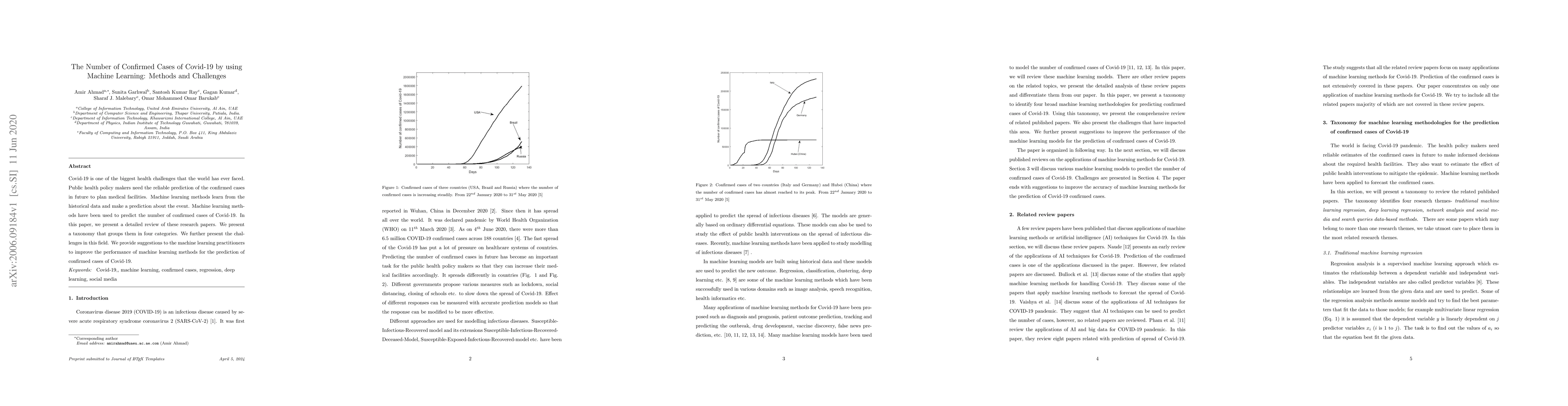 Covid-19 is one of the biggest health challenges that the world has ever faced. Public health policy makers need the reliable prediction of the confirmed cases in future to plan medical facilities. Machine learning methods learn from the historical data and make a prediction about the event. Machine learning methods have been used to predict the number of confirmed cases of Covid-19. In this paper, we present a detailed review of these research papers. We present a taxonomy that groups them in four categories. We further present the challenges in this field. We provide suggestions to the machine learning practitioners to improve the performance of machine learning methods for the prediction of confirmed cases of Covid-19.