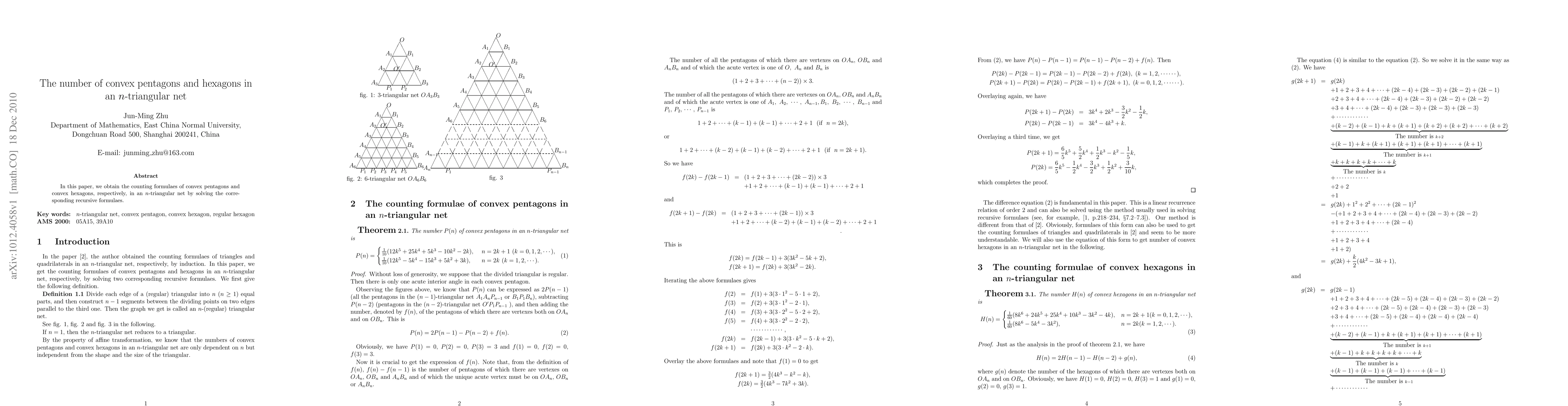 In this paper, we obtain the counting formulaes of convex pentagons and convex hexagons, respectively, in an $n$-triangular net by solving the corresponding recursive formulaes.