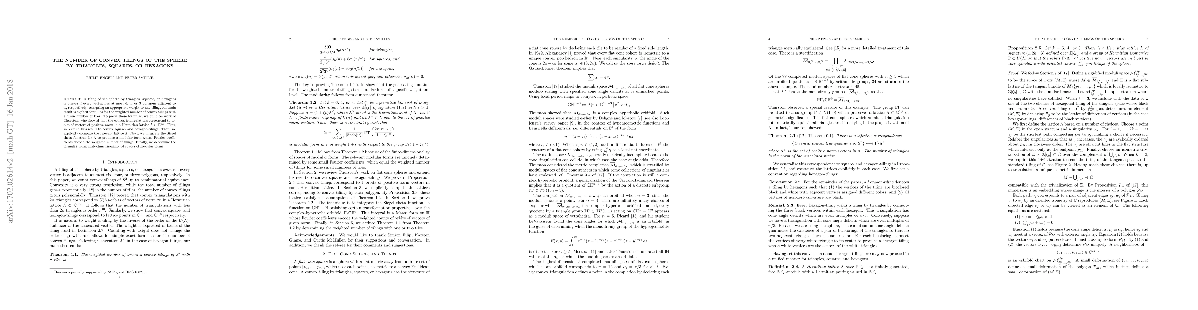 This paper provides explicit formulas for the weighted number of convex tilings of the sphere by triangles, squares, and hexagons, based on the work of Thurston and the construction of a Hermitian lattice. It extends the correspondence to convex square- and hexagon-tilings and determines the formulas using modular forms.