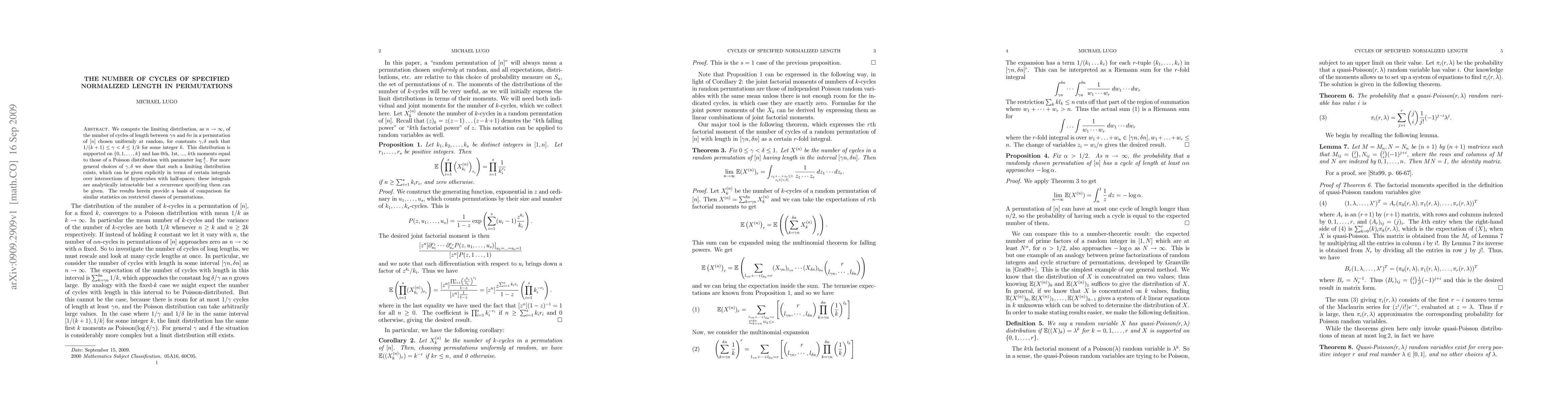 We compute the limiting distribution, as n approaches infinity, of the number of cycles of length between gamma n and delta n in a permutation of [n] chosen uniformly at random, for constants gamma, delta such that 1/(k+1) <= gamma < delta <= 1/k for some integer k. This distribution is supported on {0, 1, ... k} and has 0th, 1st, ..., kth moments equal to those of a Poisson distribution with parameter log (delta/gamma). For more general choices of gamma, delta we show that such a limiting distribution exists, which can be given explicitly in terms of certain integrals over intersections of hypercubes with half-spaces; these integrals are analytically intractable but a recurrence specifying them can be given. The results herein provide a basis of comparison for similar statistics on restricted classes of permutations.