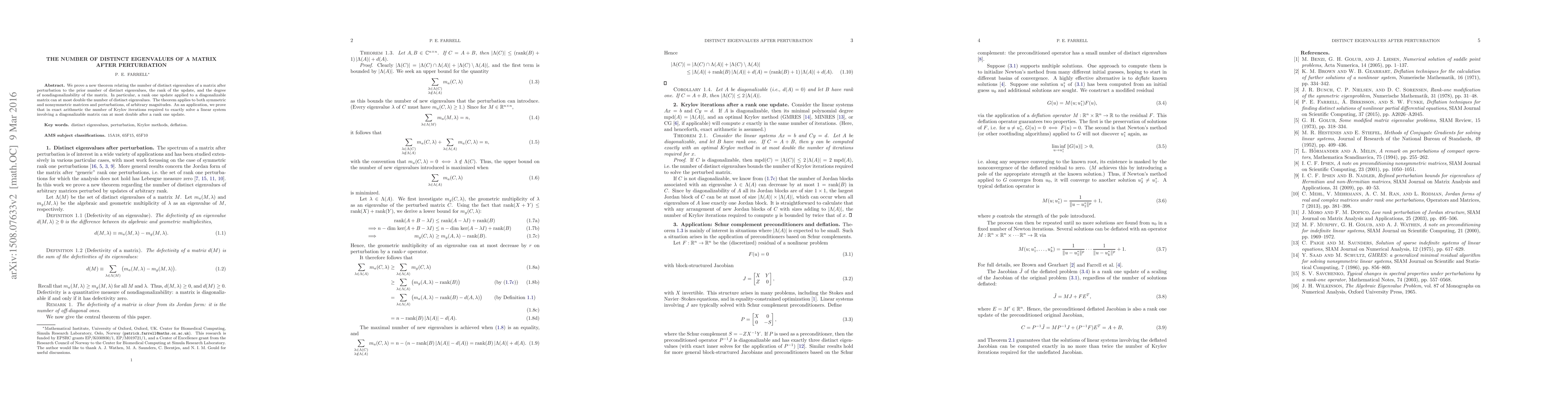 A new theorem proves that a rank one update to a diagonalizable matrix can at most double the number of distinct eigenvalues, with implications for solving linear systems in exact arithmetic.