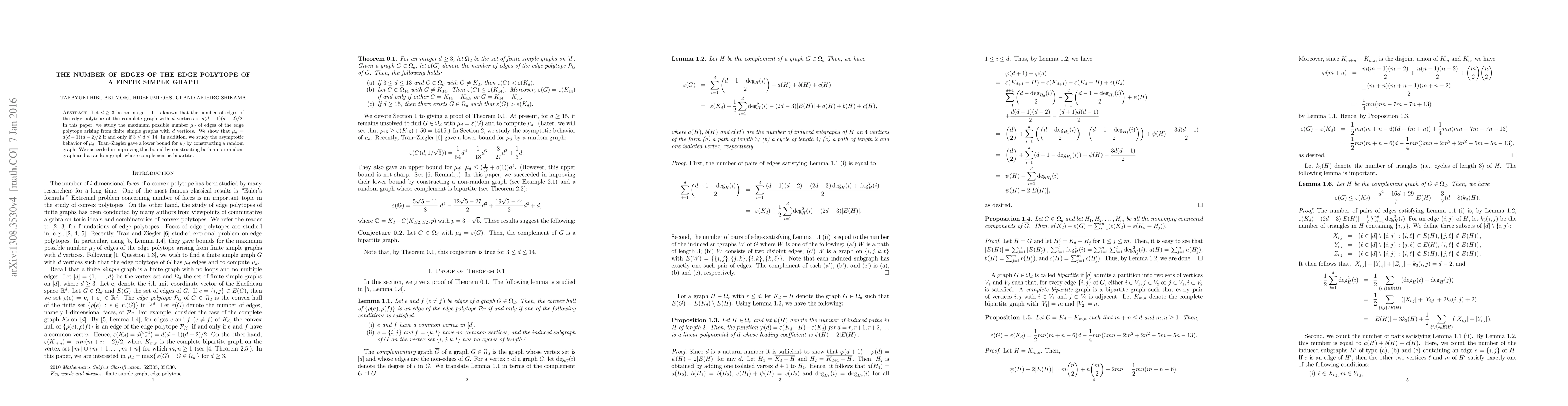 Let $d \geq 3$ be an integer. It is known that the number of edges of the edge polytope of the complete graph with $d$ vertices is $d(d-1)(d-2)/2$. In this paper, we study the maximum possible number $\mu_d$ of edges of the edge polytope arising from finite simple graphs with $d$ vertices. We show that $\mu_{d}=d(d-1)(d-2)/2$ if and only if $3 \leq d \leq 14$. In addition, we study the asymptotic behavior of $\mu_d$. Tran--Ziegler gave a lower bound for $\mu_d$ by constructing a random graph. We succeeded in improving this bound by constructing both a non-random graph and a random graph whose complement is bipartite.