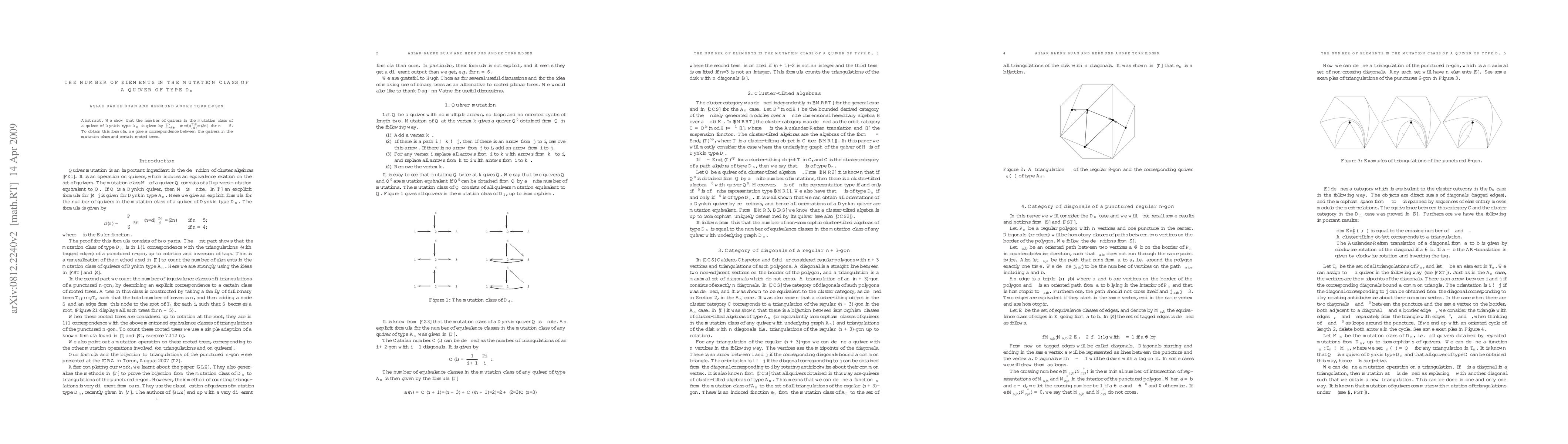 The research paper establishes a formula for the number of quivers in the mutation class of a Dynkin type $D_n$ quiver, given by $\sum_{d|n} \phi(n/d)\binom{2d}{d}/(2n)$ for $n \geq 5$, utilizing a correspondence between these quivers and specific rooted trees.