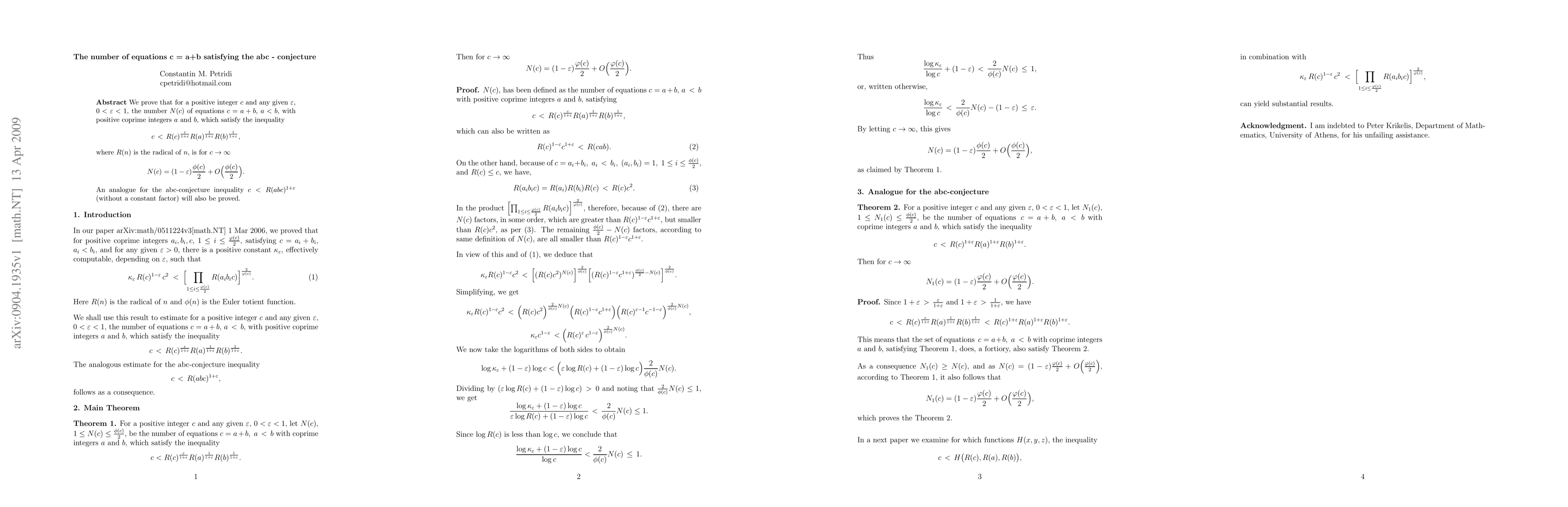 This paper proves that for large positive integers $c$, the number of pairs $(a, b)$ of coprime integers satisfying $c = a + b$ and an inequality related to the abc-conjecture is asymptotically $(1-\varepsilon)\frac{\phi(c)}{2}$ for $0 < \varepsilon < 1$, plus a small error term. An analogous result is also established for the abc-conjecture inequality without a constant factor.