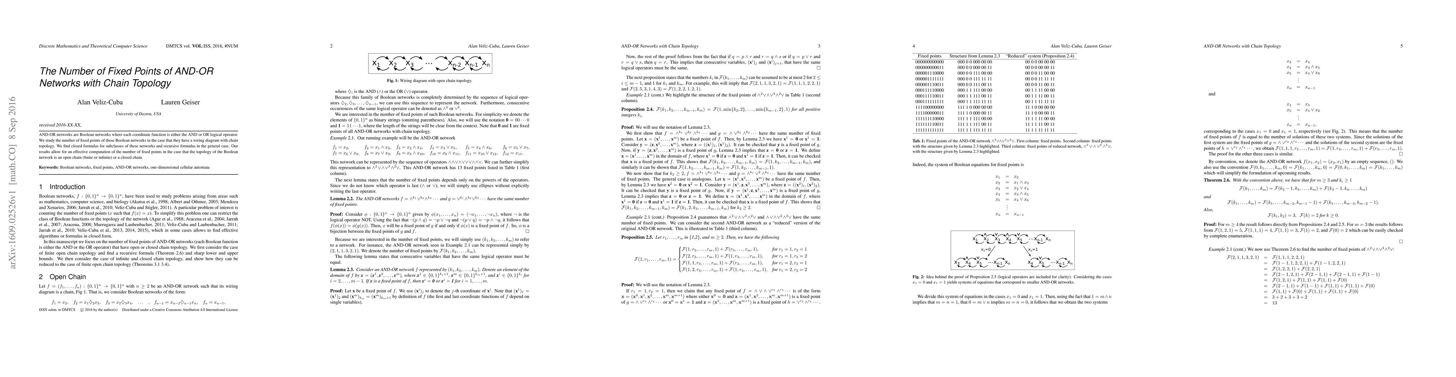 This paper investigates the number of fixed points in AND-OR Boolean networks with chain topology, deriving closed formulas for specific subclasses and recursive formulas for general cases. The findings enable efficient computation of fixed points for both open and closed chain topologies.