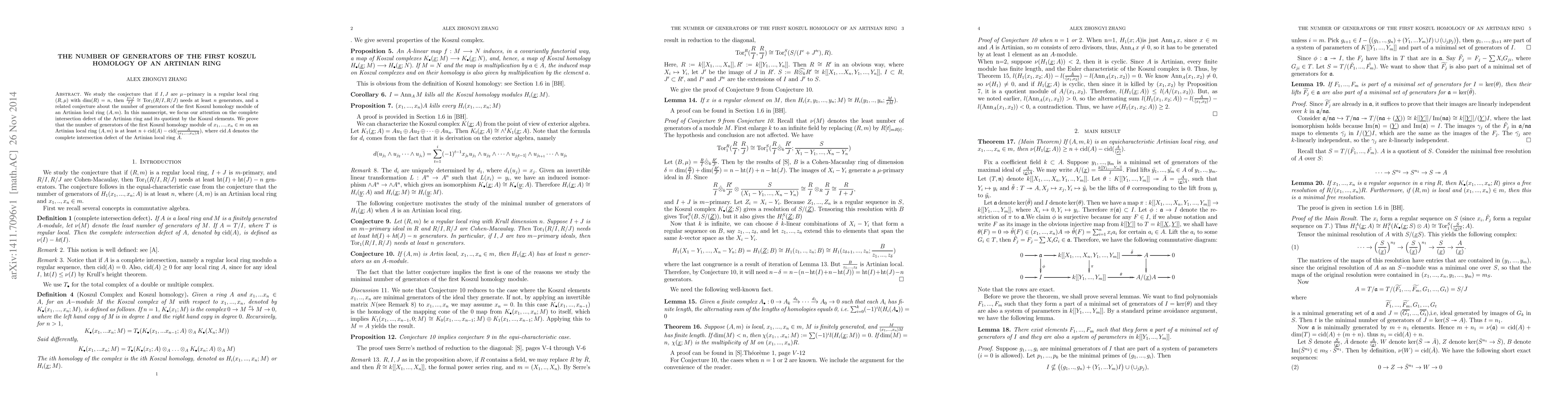 This paper investigates the conjecture regarding the minimum number of generators needed for the first Koszul homology module in Artinian local rings, proving that the number is at least $n + \cid(A) - \cid(\frac{A}{(x_1,...,x_n)A})$, where $\cid$ denotes the complete intersection defect.