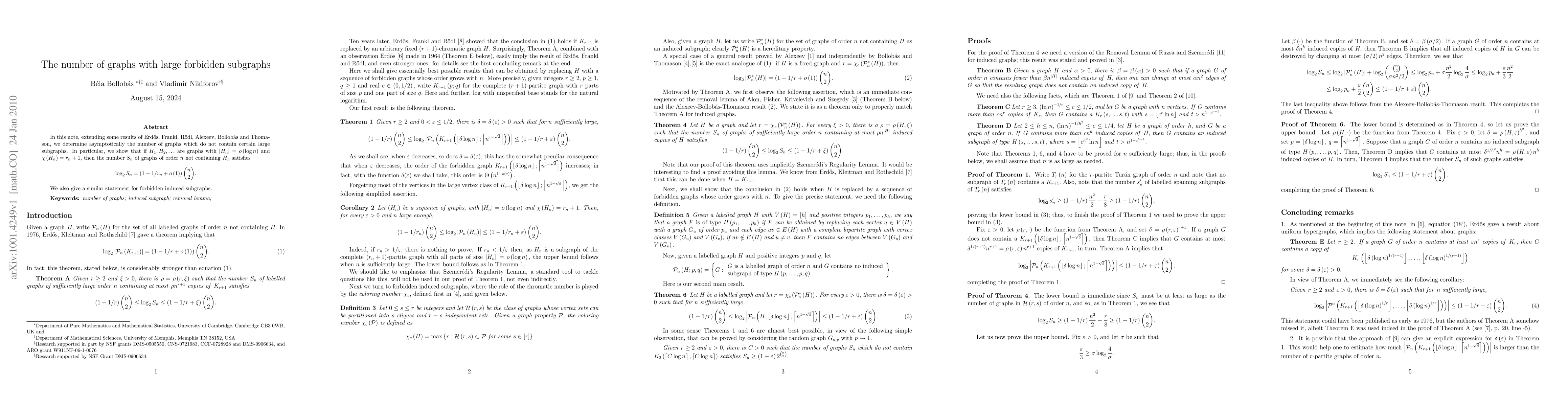 The paper presents novel asymptotic bounds for the number of graphs avoiding large forbidden subgraphs, extending previous work and providing results for both general subgraphs and induced subgraphs.