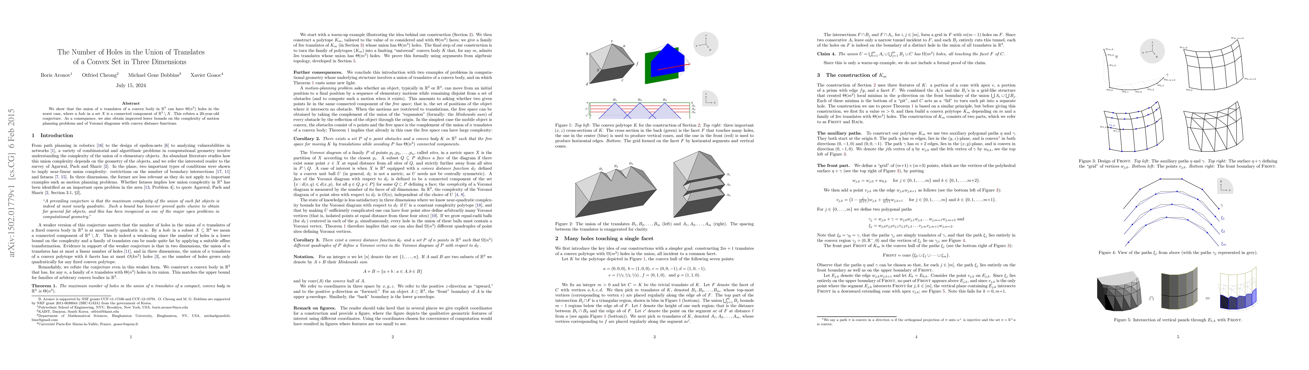 We show that the union of $n$ translates of a convex body in $\mathbb{R}^3$ can have $\Theta(n^3)$ holes in the worst case, where a hole in a set $X$ is a connected component of $\mathbb{R}^3 \setminus X$. This refutes a 20-year-old conjecture. As a consequence, we also obtain improved lower bounds on the complexity of motion planning problems and of Voronoi diagrams with convex distance functions.