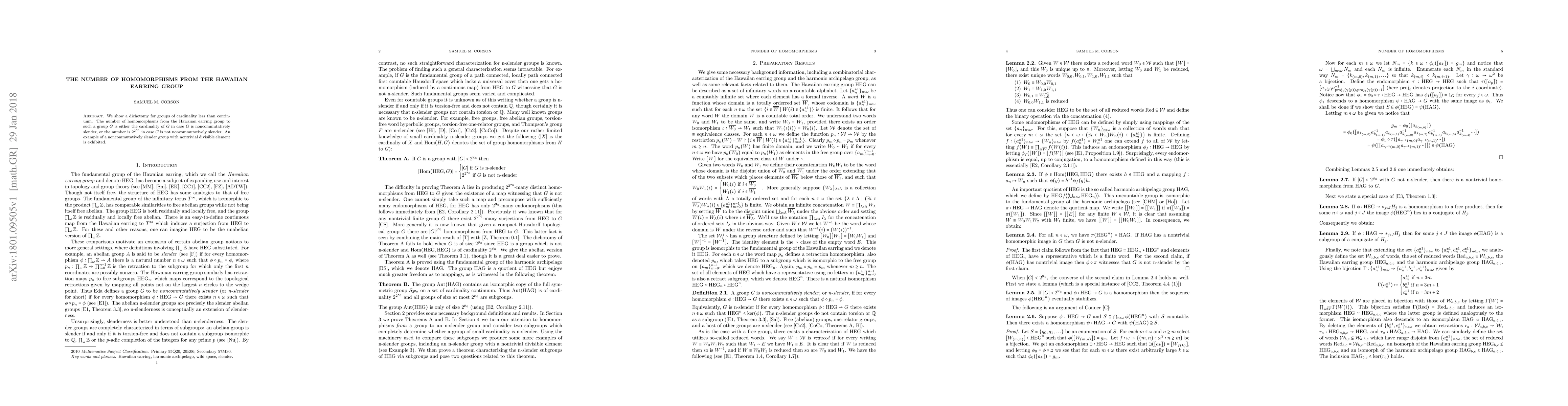 We show a dichotomy for groups of cardinality less than continuum. The number of homomorphisms from the Hawaiian earring group to such a group $G$ is either the cardinality of $G$ in case $G$ is noncommutatively slender, or the number is $2^{2^{\aleph_0}}$ in case $G$ is not noncommutatively slender. An example of a noncommutatively slender group with nontrivial divisible element is exhibited.