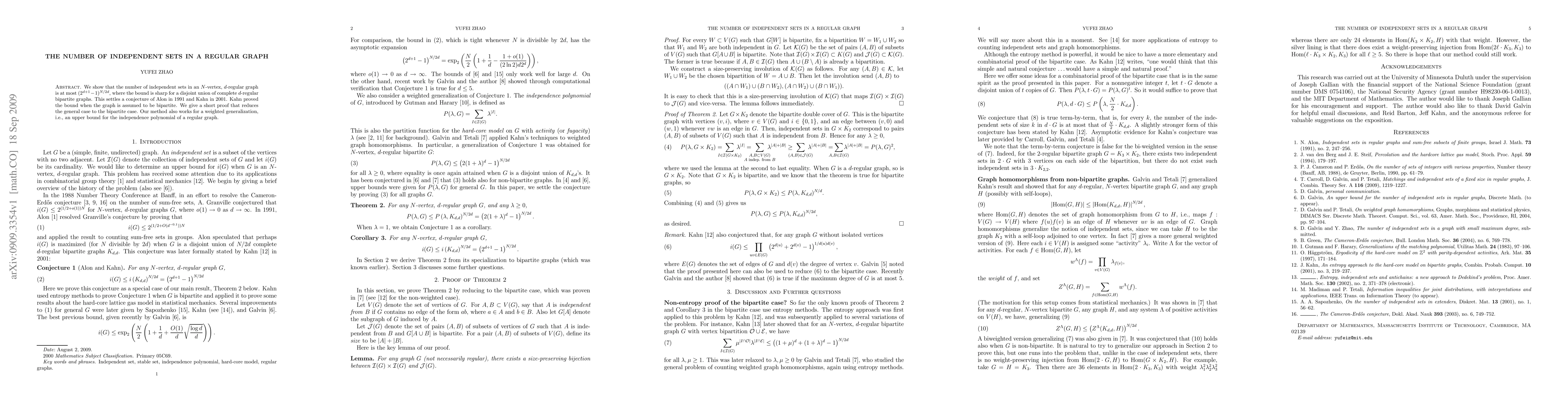 Researchers solved a long-standing conjecture on the maximum number of independent sets in regular graphs, finding that it is at most (2^{d+1} - 1)^{N/2d}. The bound is sharp for specific cases.
