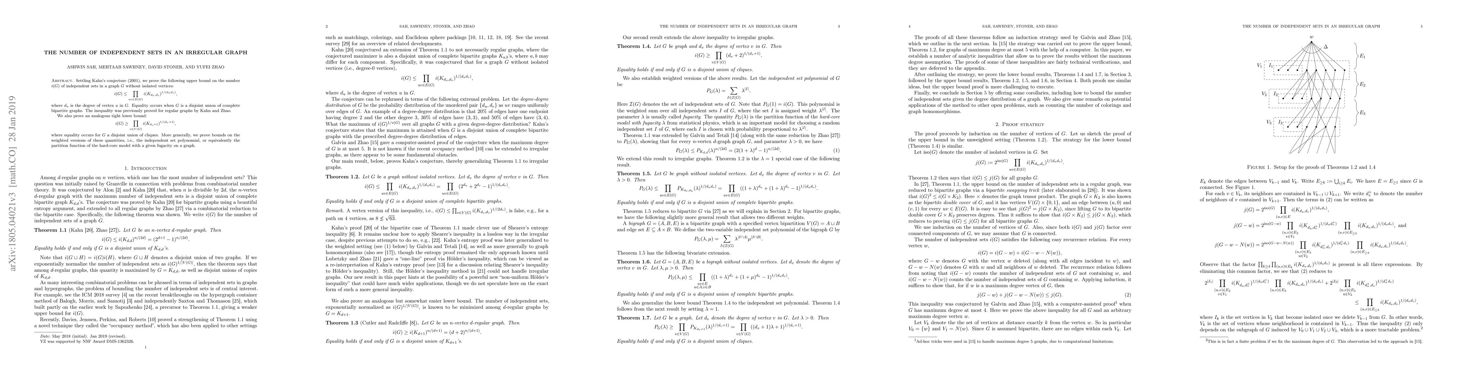 Settling Kahn's conjecture (2001), we prove the following upper bound on the number $i(G)$ of independent sets in a graph $G$ without isolated vertices: \[ i(G) \le \prod_{uv \in E(G)} i(K_{d_u,d_v})^{1/(d_u d_v)}, \] where $d_u$ is the degree of vertex $u$ in $G$. Equality occurs when $G$ is a disjoint union of complete bipartite graphs. The inequality was previously proved for regular graphs by Kahn and Zhao. We also prove an analogous tight lower bound: \[ i(G) \ge \prod_{v \in V(G)} i(K_{d_v+1})^{1/(d_v + 1)}, \] where equality occurs for $G$ a disjoint union of cliques. More generally, we prove bounds on the weighted versions of these quantities, i.e., the independent set polynomial, or equivalently the partition function of the hard-core model with a given fugacity on a graph.