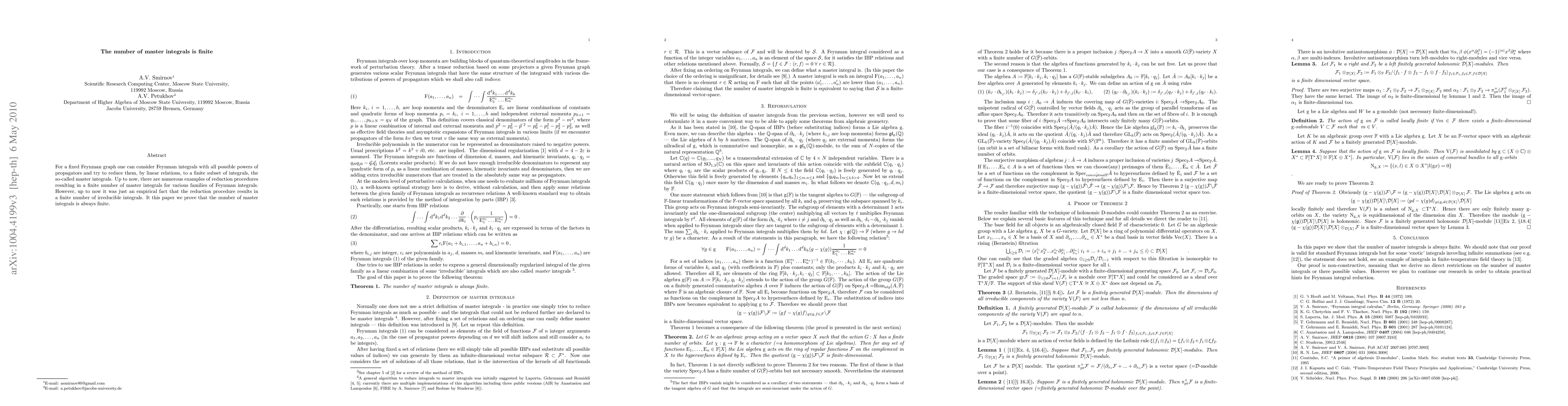 This paper proves a theoretical result showing that for any given Feynman graph, the number of distinct master integrals—integrals that cannot be further reduced by linear relations—is always finite, thereby establishing a fundamental property in quantum field theory calculations.