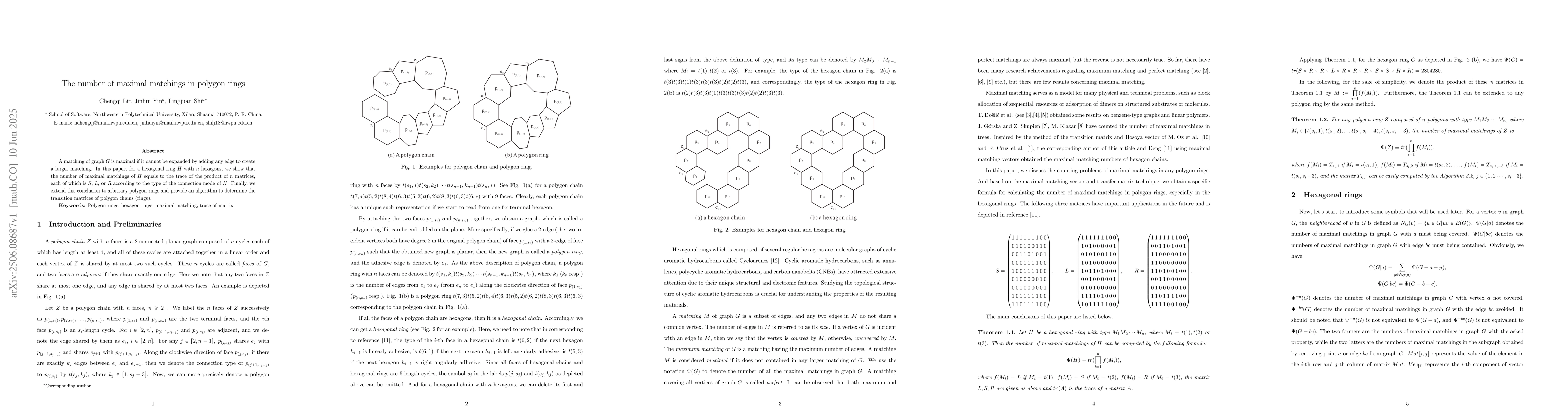 The paper shows that the number of maximal matchings in a polygon ring can be calculated as the trace of a matrix product, extending to arbitrary polygon rings with an algorithm.