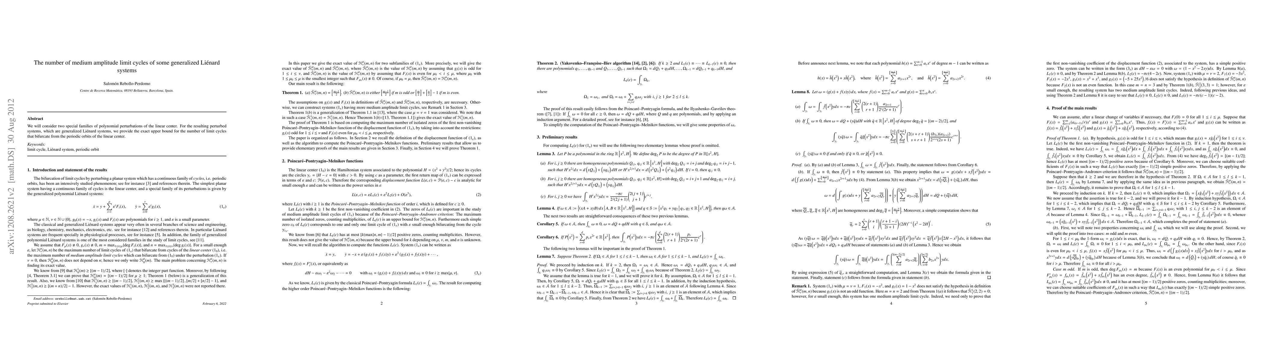 This paper investigates two specific families of polynomial perturbations of linear centers, deriving the exact upper bound for the number of medium amplitude limit cycles in generalized Liénard systems that emerge from the periodic orbits of the linear center.