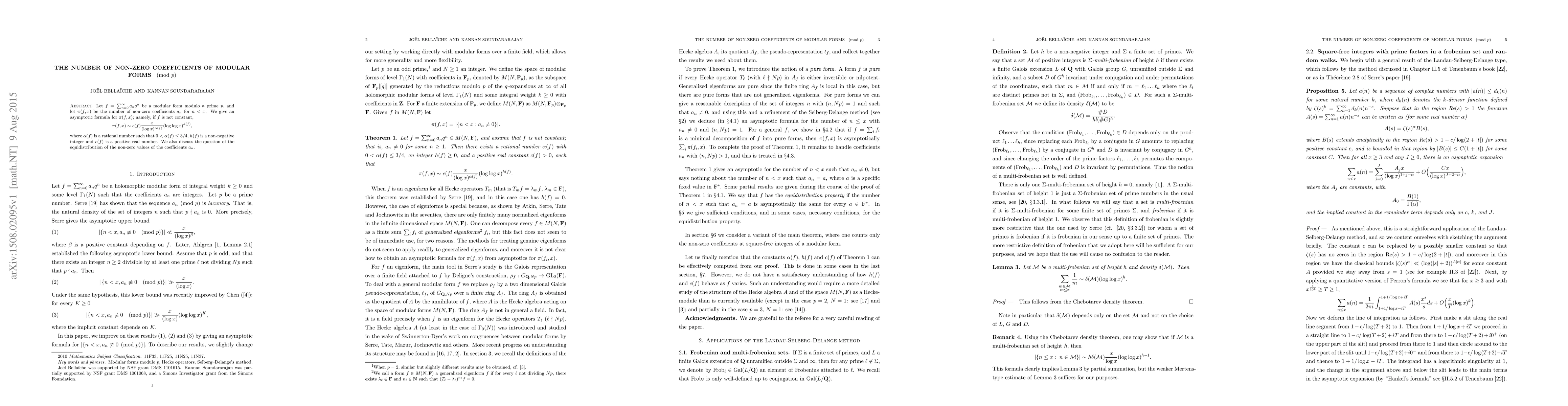 We give an asymptotic formula for the number of non-zero coefficients of modular forms (mod p).
