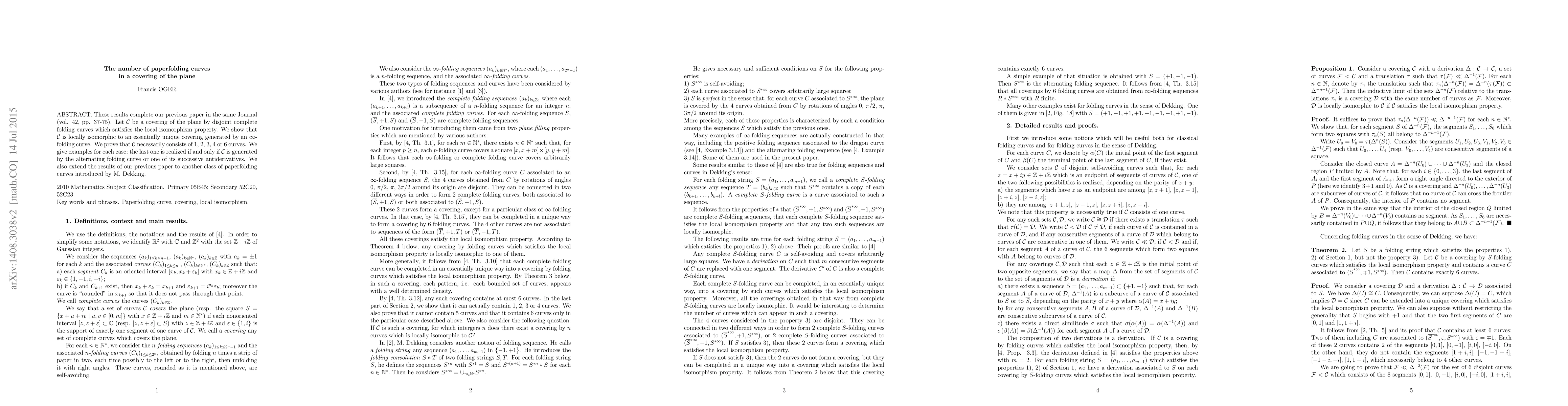 This paper completes previous work on covering the plane with paperfolding curves, demonstrating that such coverings are locally isomorphic to unique coverings generated by an $\infty$-folding curve. It proves that these coverings can consist of 1, 2, 3, 4, or 6 curves, providing examples for each case, with the six-curve case realized only through specific folding curves.