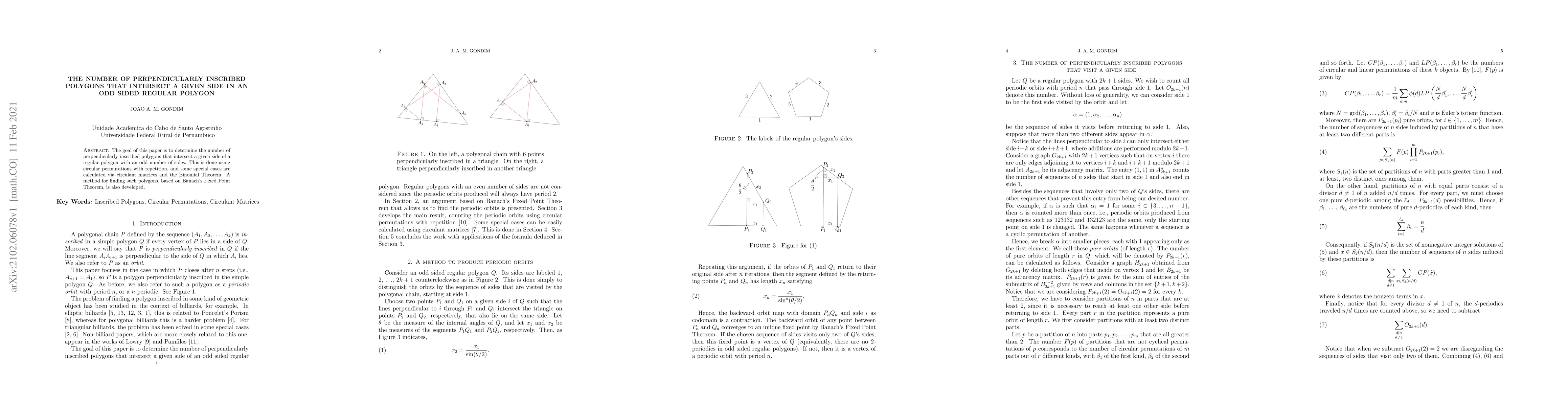 The goal of this paper is to determine the number of perpendicularly inscribed polygons that intersect a given side of a regular polygon with an odd number of sides. This is done using circular permutations with repetition, and some special cases are calculated via circulant matrices and the Binomial Theorem. A method for finding such polygons, based on Banach's Fixed Point Theorem, is also developed.