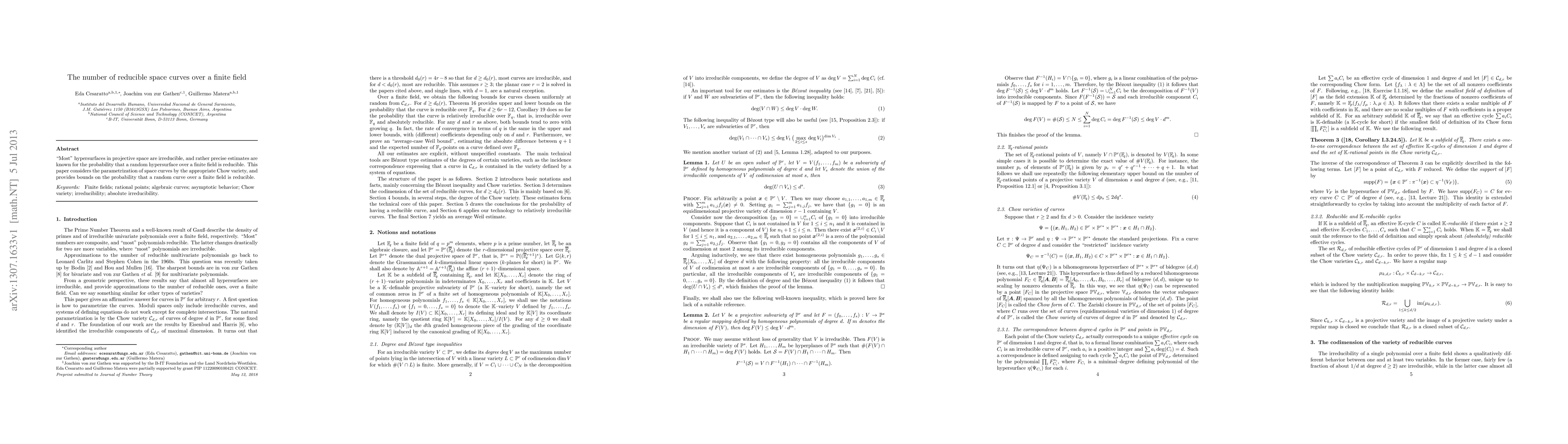 "Most" hypersurfaces in projective space are irreducible, and rather precise estimates are known for the probability that a random hypersurface over a finite field is reducible. This paper considers the parametrization of space curves by the appropriate Chow variety, and provides bounds on the probability that a random curve over a finite field is reducible.