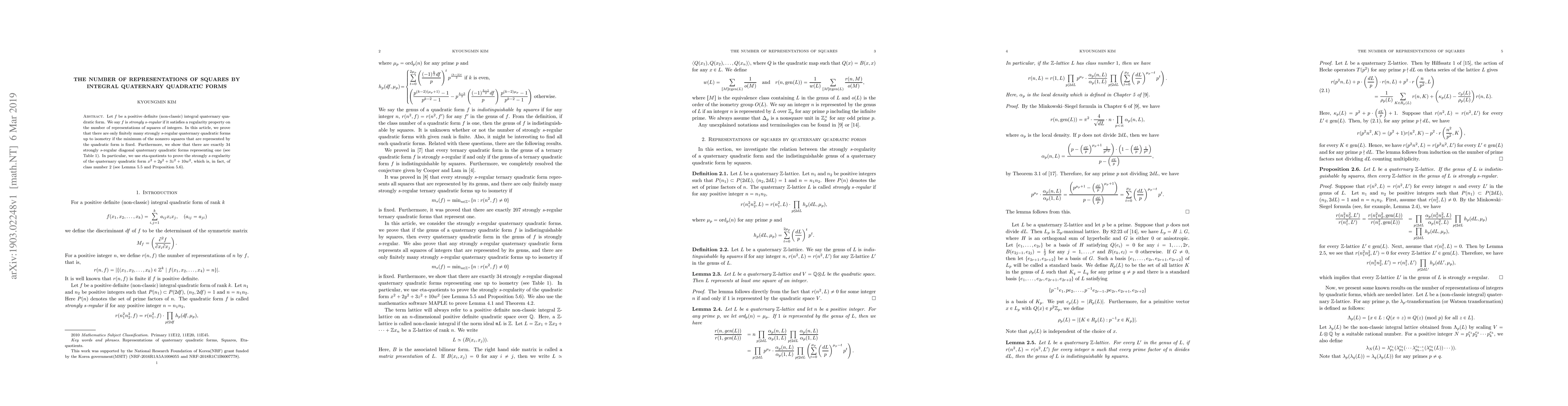 This paper proves that there are only finitely many strongly $s$-regular integral quaternary quadratic forms representing fixed nonzero squares and identifies exactly $34$ such diagonal forms. The form $x^2+2y^2+3z^2+10w^2$ is shown to be strongly $s$-regular using eta-quotients.