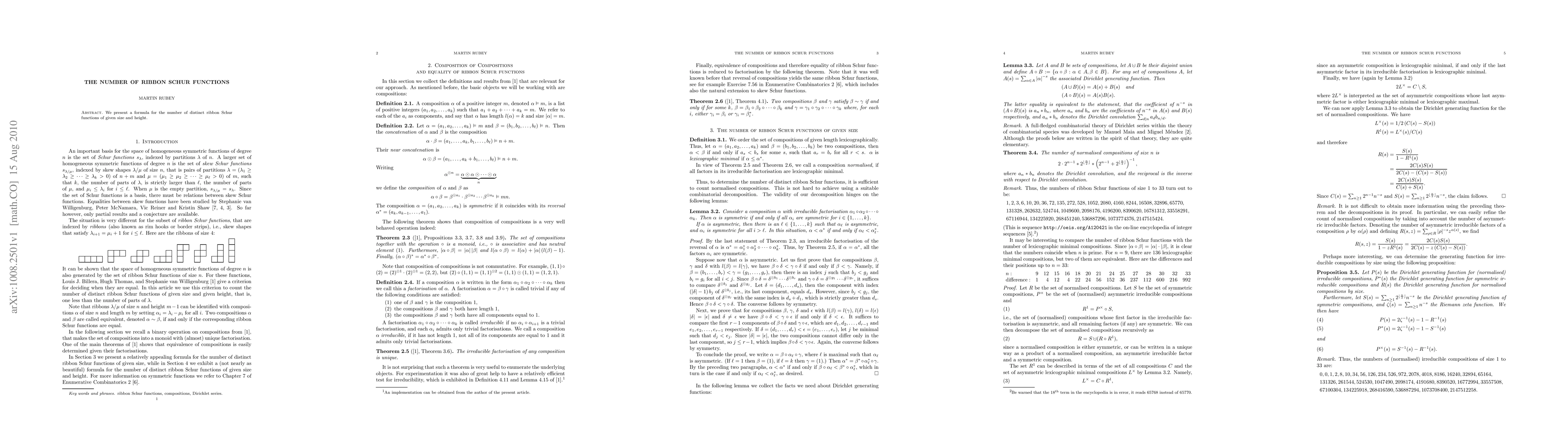 Summary: This paper provides a formula for determining the count of distinct ribbon Schur functions based on their size and height, contributing to the understanding of their combinatorial properties.