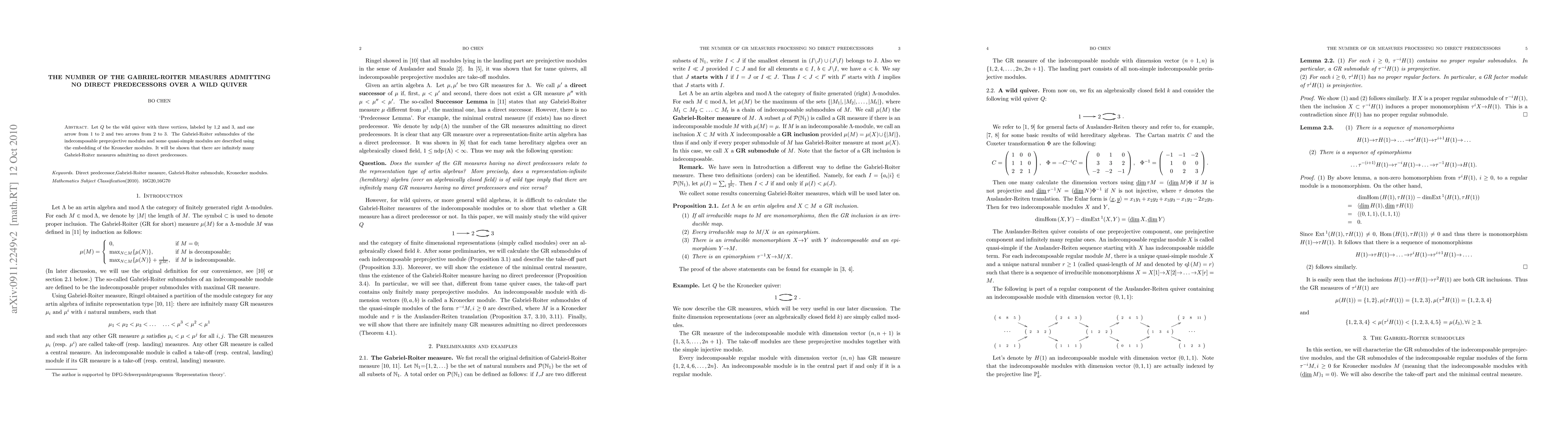 This research explores the concept of Gabriel-Roiter measures in the context of wild quivers to understand the representation type of artin algebras, demonstrating that there are infinitely many such measures without direct predecessors in a specific wild quiver with three vertices and three arrows.