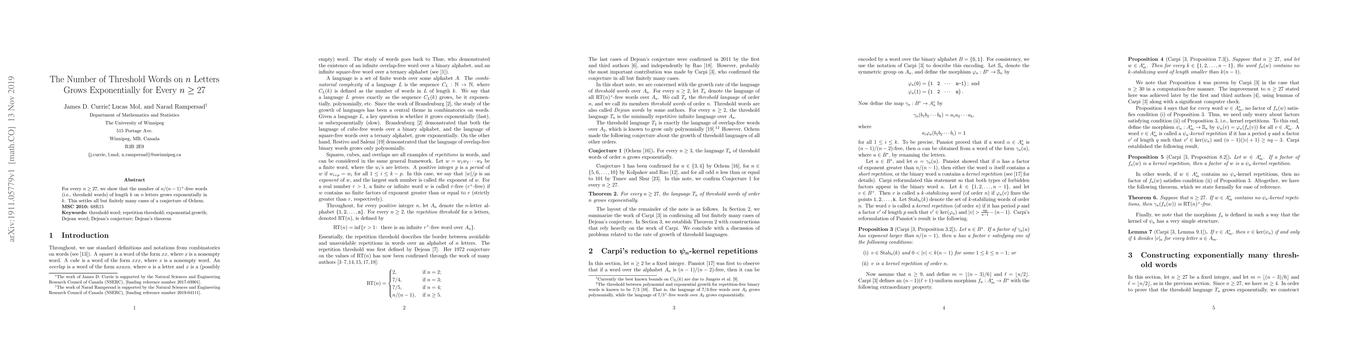 For every $n\geq 27$, we show that the number of $n/(n-1)^+$-free words (i.e., threshold words) of length $k$ on $n$ letters grows exponentially in $k$. This settles all but finitely many cases of a conjecture of Ochem.