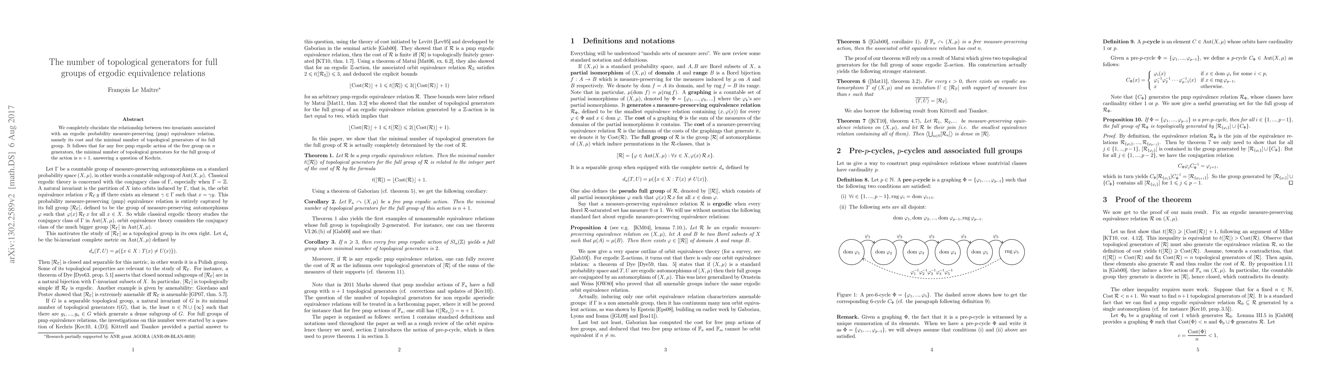 We completely elucidate the relationship between two invariants associated with an ergodic probability measure-preserving (pmp) equivalence relation, namely its cost and the minimal number of topological generators of its full group. It follows that for any free pmp ergodic action of the free group on $n$ generators, the minimal number of topological generators for the full group of the action is $n+1$, answering a question of Kechris.