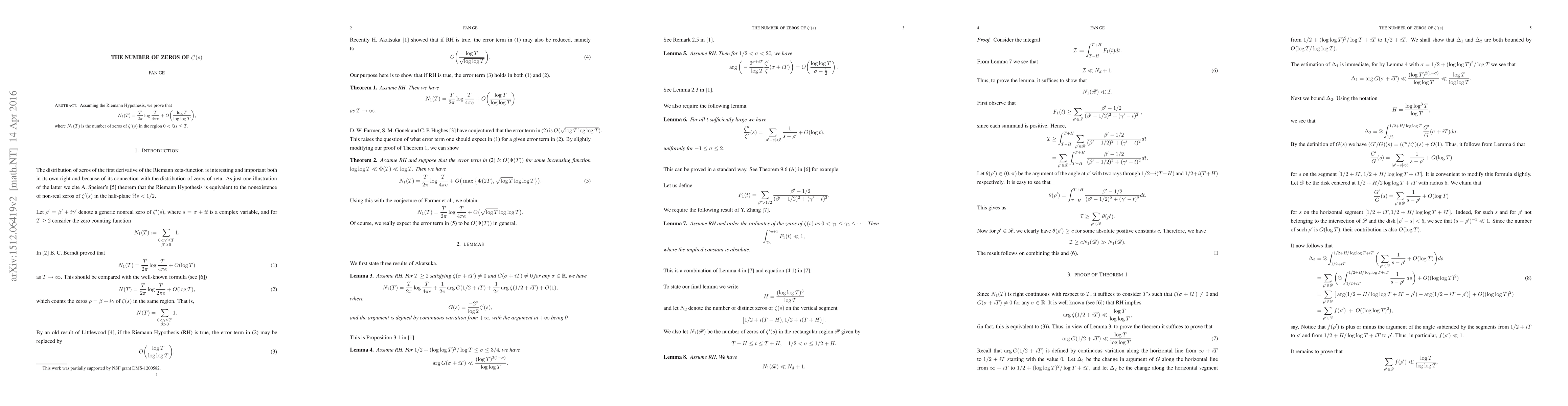 The paper assumes the Riemann Hypothesis (RH) and utilizes complex analysis techniques, including properties of the Riemann zeta function $\zeta(s)$ and its derivative $\zeta'(s)$, to estimate the number of zeros of $\zeta'(s)$ in specified regions.
