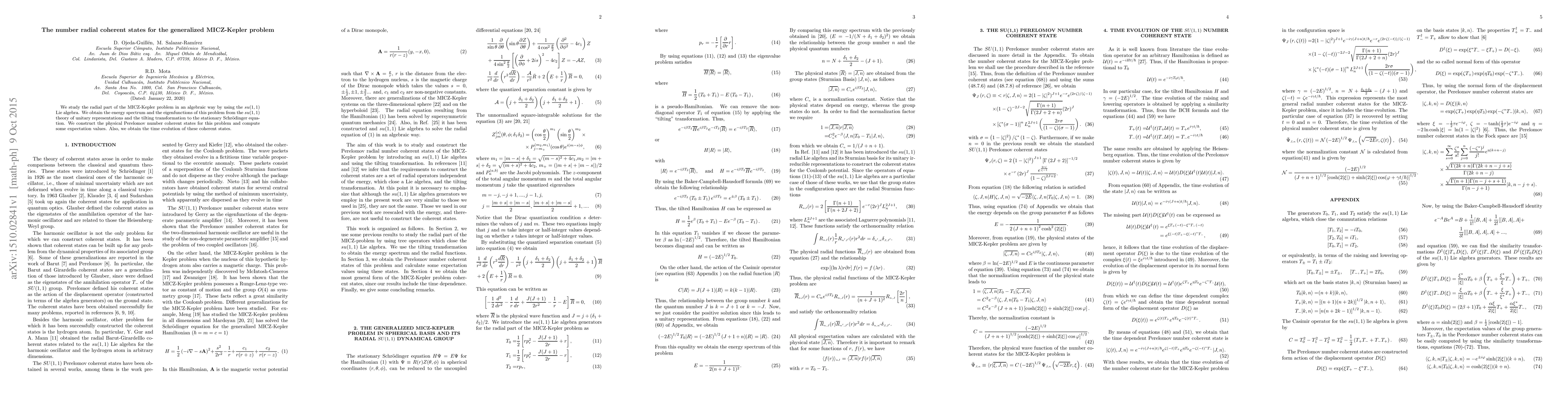 The paper introduces an algebraic method using the $su(1,1)$ Lie algebra to solve the radial part of the MICZ-Kepler problem, providing energy spectrum, eigenfunctions, and coherent states.