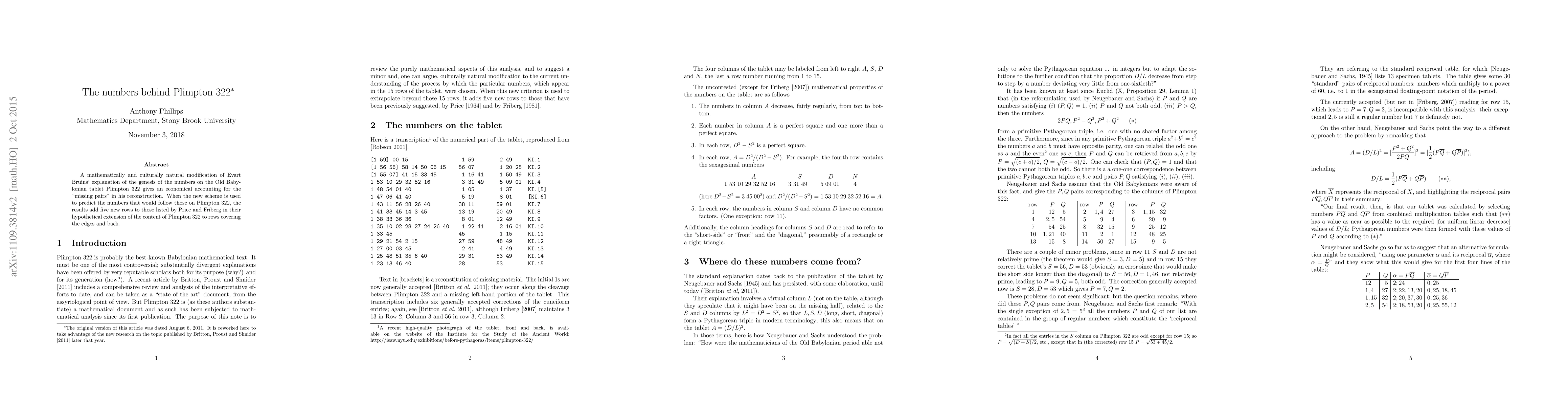 A mathematically and culturally natural modification of Evart Bruins' explanation of the genesis of the numbers on the Old Babylonian tablet Plimpton 322 gives an economical accounting for the "missing pairs" in his reconstruction. When the new scheme is used to predict the numbers that would follow those on Plimpton 322, the results add five new rows to those listed by Price and Friberg in their hypothetical extension of the content of Plimpton 322 to rows covering the edges and back.