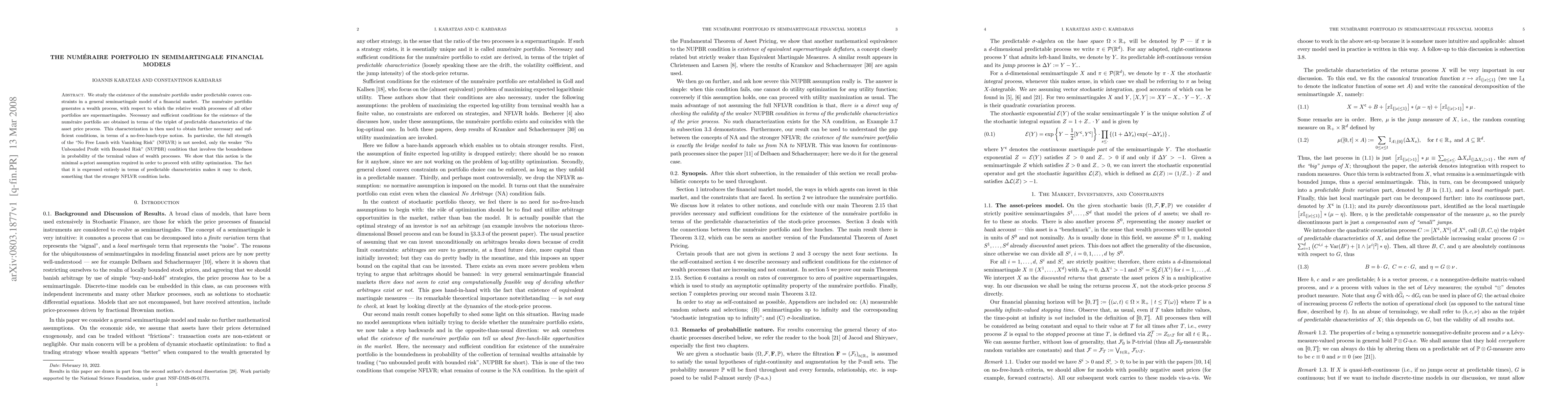 This paper investigates the existence of a numeraire portfolio under predictable convex constraints in semimartingale financial models, establishing necessary and sufficient conditions for its existence. It finds that the "No Unbounded Profit with Bounded Risk" (NUPBR) condition is sufficient for utility optimization, providing a more manageable criterion than the "No Free Lunch with Vanishing Risk" (NFLVR).