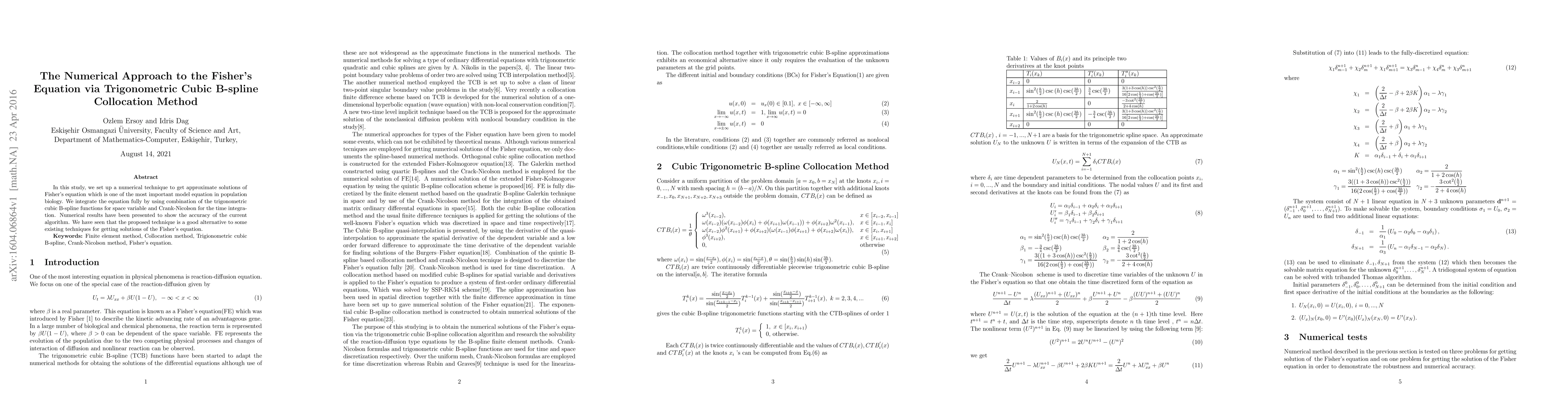 This paper proposes a numerical method using trigonometric cubic B-spline collocation for solving Fisher's equation, a key model in population biology, combining it with the Crank-Nicolson scheme for time integration. The results demonstrate the method's accuracy and effectiveness as an alternative to other existing techniques.