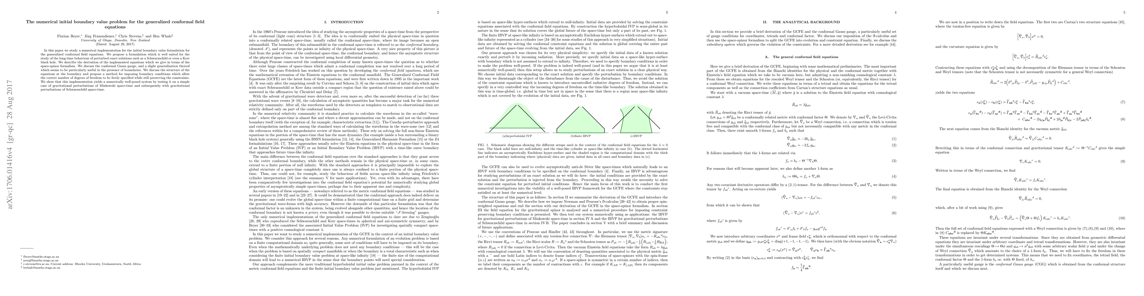 Researchers developed a numerical method for solving the generalized conformal field equations, which helps study long-term behavior of black holes, and demonstrated its effectiveness in simulating gravitational perturbations of Minkowski space-time and Schwarzschild space-time.