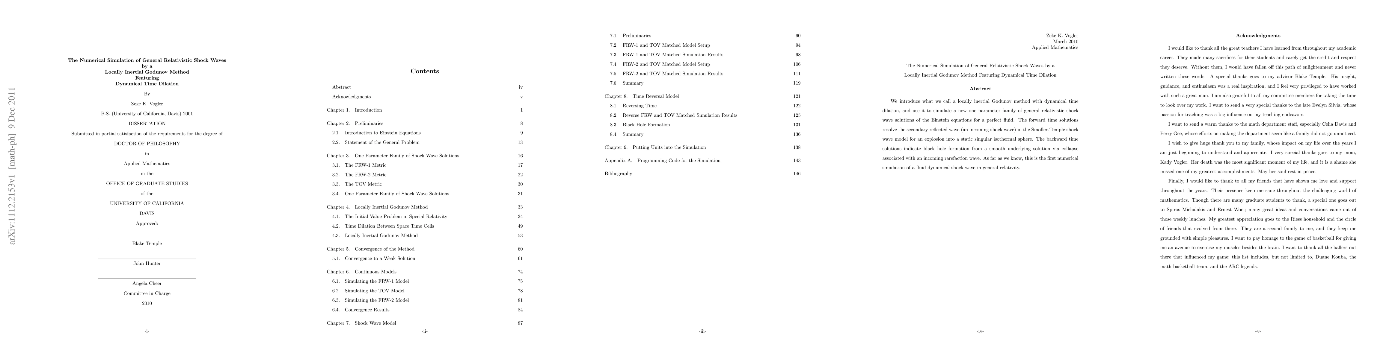 This paper presents a locally inertial Godunov method with dynamical time dilation to simulate general relativistic shock wave solutions in perfect fluids, resolving the secondary reflected wave and indicating black hole formation via collapse. This marks the first numerical simulation of fluid dynamical shock waves in general relativity.