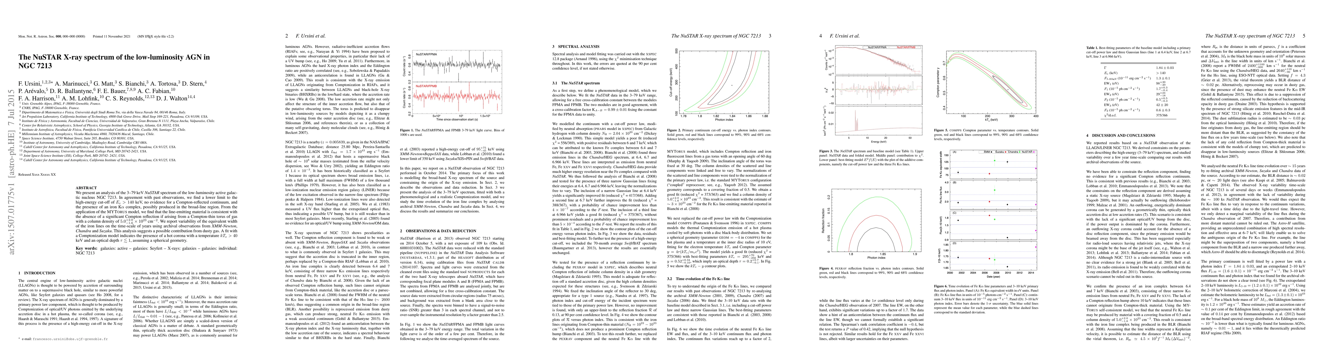 This study analyzes the NuSTAR X-ray spectrum of the low-luminosity AGN NGC 7213, finding a high-energy cut-off above 140 keV and variability in iron lines over years, suggesting contributions from dusty gas and a hot corona with a temperature exceeding 40 keV.