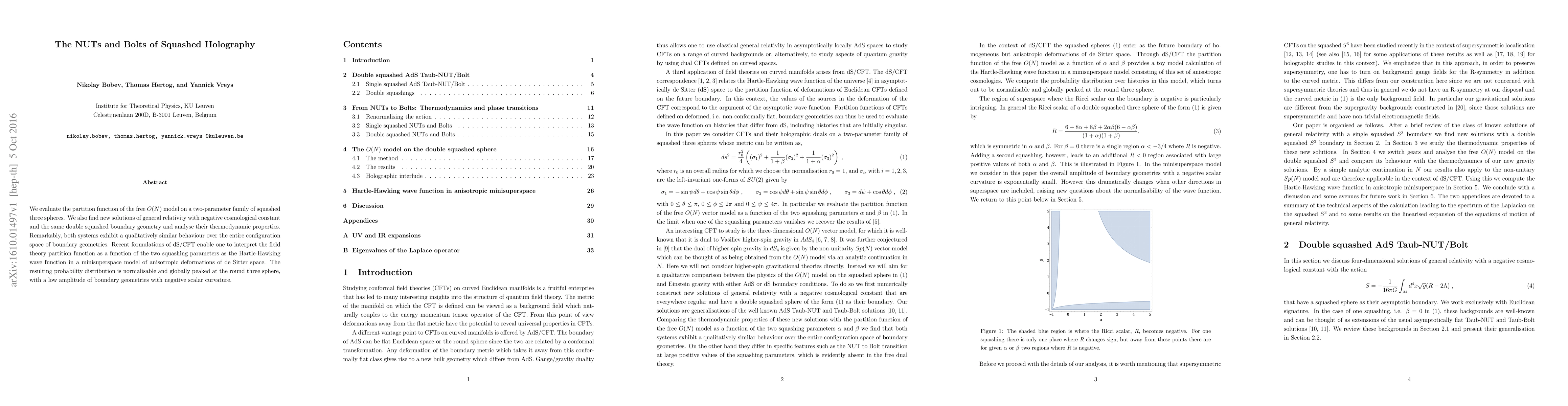 Researchers found that squashed holography models exhibit similar behavior in both a free O(N) model and general relativity with negative cosmological constant, peaking at the round three sphere with low amplitude boundary geometries.