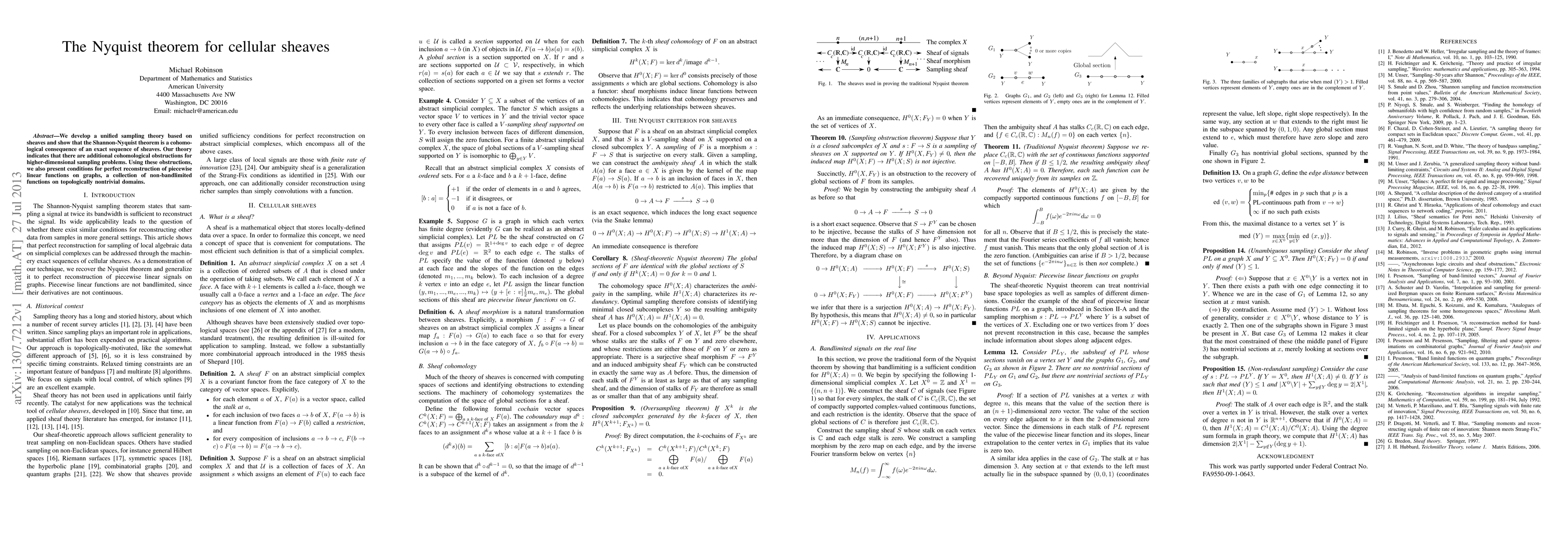 We develop a unified sampling theory based on sheaves and show that the Shannon-Nyquist theorem is a cohomological consequence of an exact sequence of sheaves. Our theory indicates that there are additional cohomological obstructions for higher-dimensional sampling problems. Using these obstructions, we also present conditions for perfect reconstruction of piecewise linear functions on graphs, a collection of non-bandlimited functions on topologically nontrivial domains.
